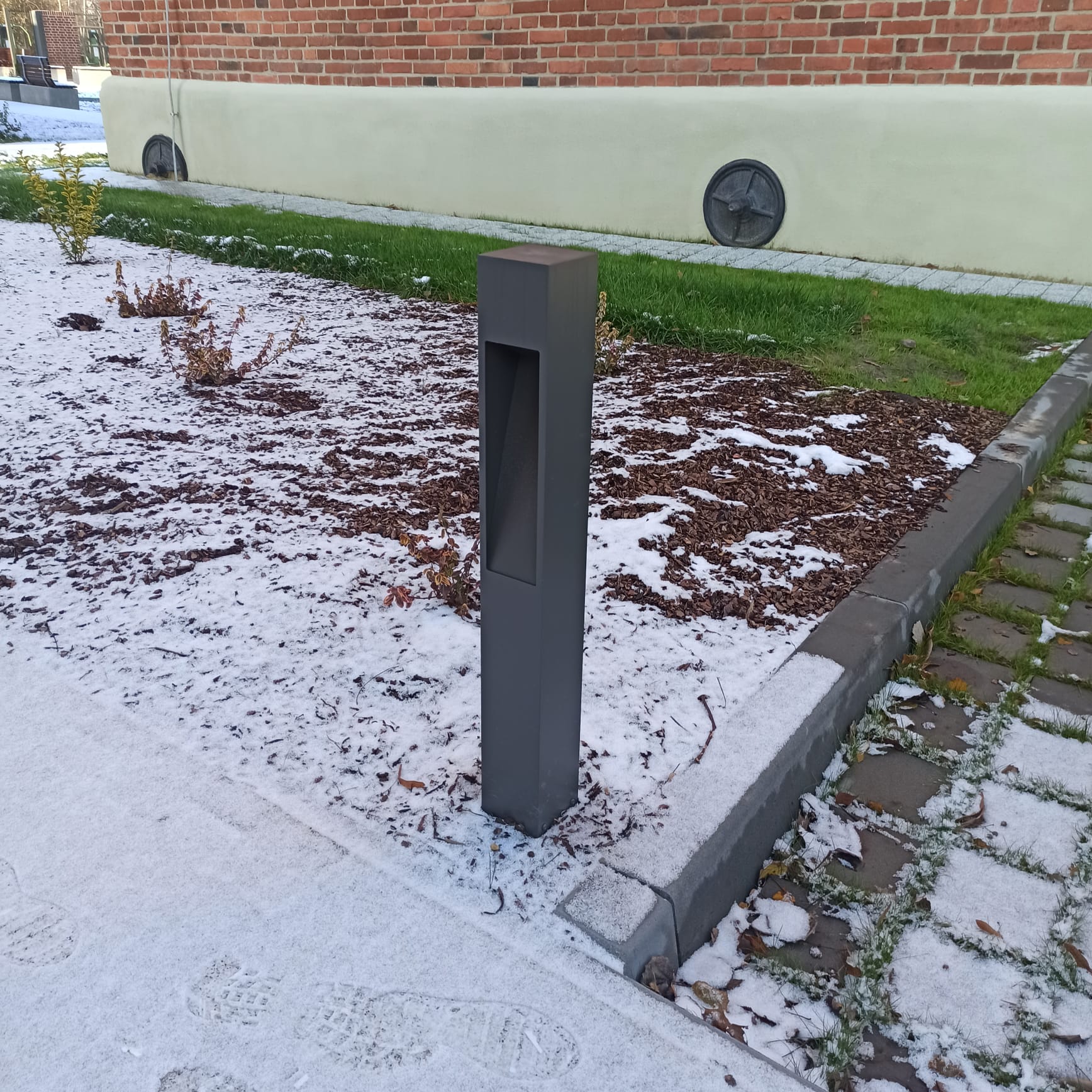 Wysokość modelu wynosi 80 cm. Każdy z boków lampy ma szerokość 10 cm. Korpus wykonany został z wytrzymałego aluminium. Aby dodatkowo wzmocnić odporność słupka na dynamicznie zmieniające się warunki atmosferyczne, korpus pokryto warstwą proszkowej farby poliestrowej, która doskonale przyczepia się do metalowej powierzchni i chroni ją przed korozją czy działaniem promieni słonecznych. Sam klosz wykonany został z poliwęglanu odpornego na promieniowanie UV. Słupek oświetleniowy MODERN 80 jest dostosowany do żarówek LED z trzonkiem GU10. Jest to powszechnie dostępny i uniwersalny typ żarówek. Model dostępny jest w trzech wersjach kolorystycznych, które z łatwością dopasujecie Państwo do istniejącej aranżacji przestrzeni: ciemny popiel, czarny oraz srebrny.